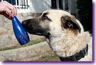 No permitas que el perro se lleve la botella porque así no conseguimos el objetivo y además puede lastimarse las encías masticándola para conseguir lo que hay dentro.