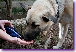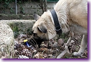 3º.- Para expertos en el rastro, con la misma botella y cuerda (esta vez es suficiente con uno o dos metros), deja a tu perro al lado de un amigo y ve alejándote de él arrastrando la botella para dejar el olor en el suelo. Realiza el movimiento en forma de “L” y esconde la botella entre unas hojas, troncos, hierba… para que no se vea a primera vista. Anímalo a la búsqueda y verás cómo tu perro sigue el rastro hecho por la botella hasta encontrarla. Prémialo con parte de su contenido y realiza este juego en distintos entornos.